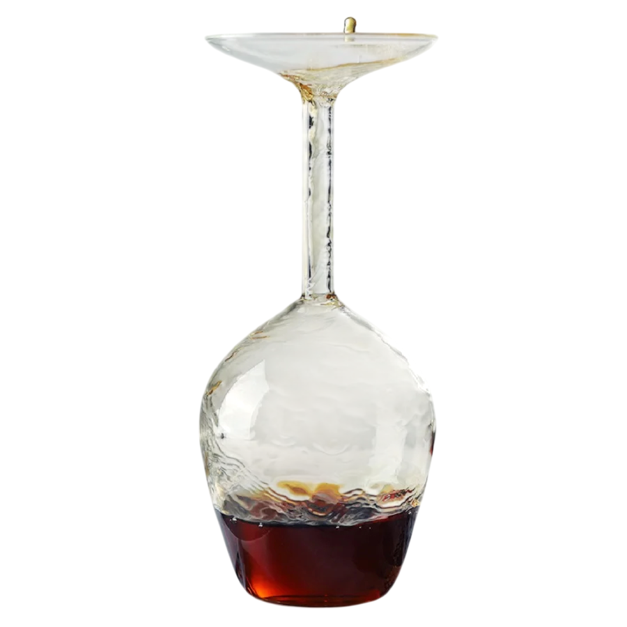 Scopri un modo insolito di servire il vino che cattura immediatamente l'attenzione e diverte ogni ospite. Questo bicchiere originale presenta un design non convenzionale, che da l'impressione di essere capovolto. Grazie alla lavorazione precisa, rimane comunque pienamente funzionale e comodo da tenere. Il bicchiere è ideale per feste domestiche, bar, ristoranti e come interessante complemento d'arredo. Si distingue non solo nel servire il vino, ma anche come decorazione stilosa o regalo originale per gli amanti del vino.