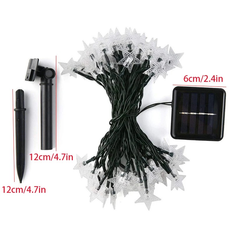 Catena luminosa solare decorativa da 12m con 100 LED a forma di stella in bianco caldo. Resistente alle intemperie, ideale per il giardino. Descrizione completa