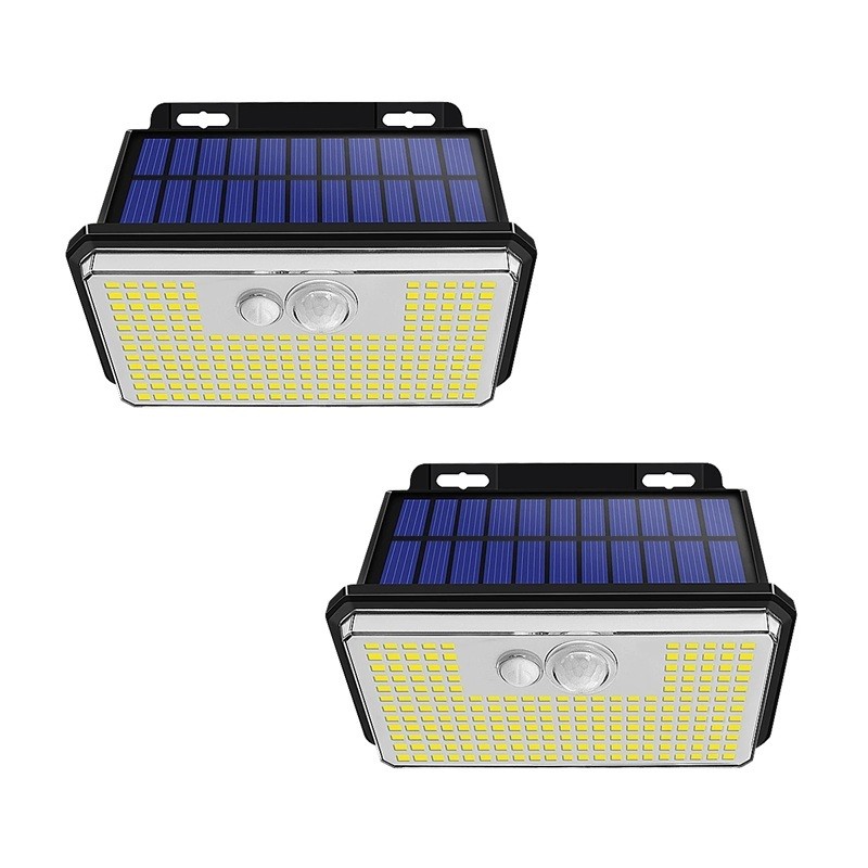 2 pezzi di luci da parete solari con sensore di movimento 197 LED Super luminose IP67 Impermeabili illuminazione di sicurezza esterna giardino casa terrazza ingresso