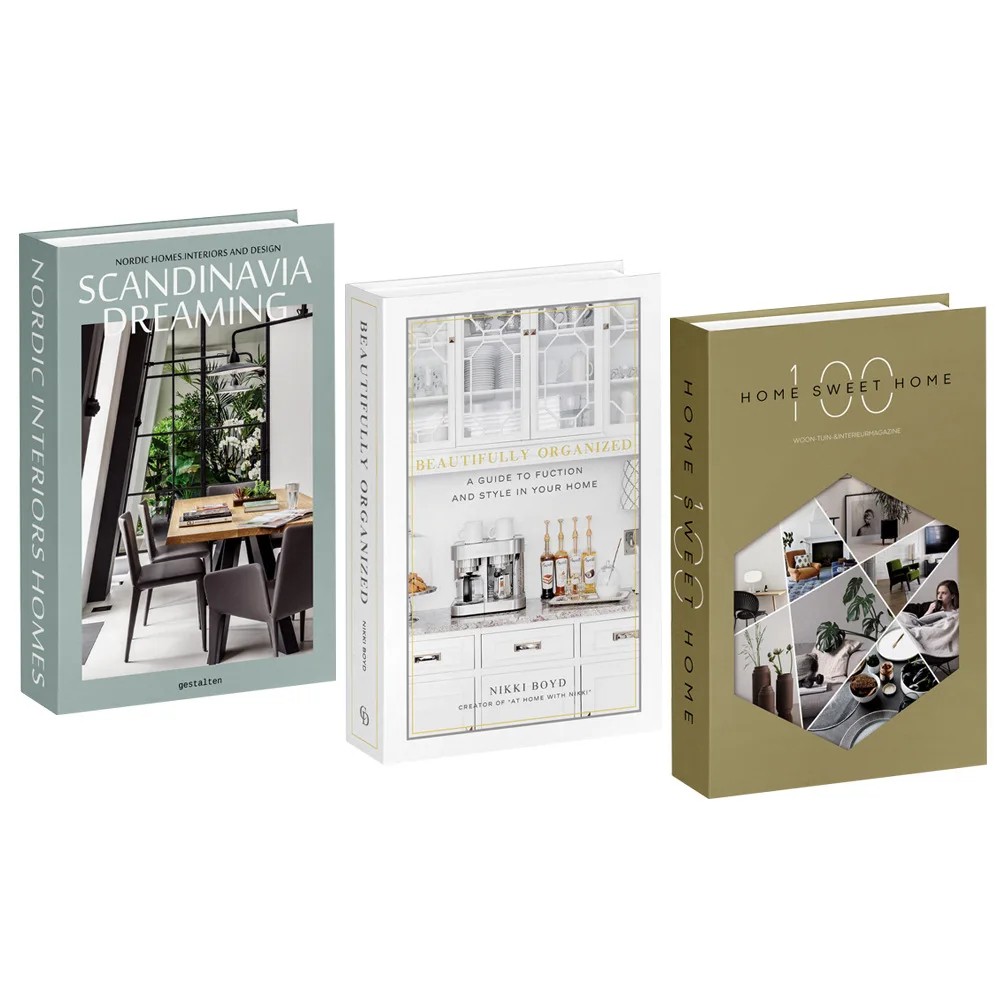 Questo tipo di decorazione è spesso utilizzato come imitazione di libri per interni, che aiuta a completare lo spazio senza la necessità di posizionare veri libri. I libri decorativi Scandinavia Dreaming possono fungere da complemento discreto su scaffali aperti, tavoli o in librerie. Negli interni creano così un elemento visivo che ricorda i libri, riempiendo spazi vuoti e unificando l'aspetto dello scaffale.