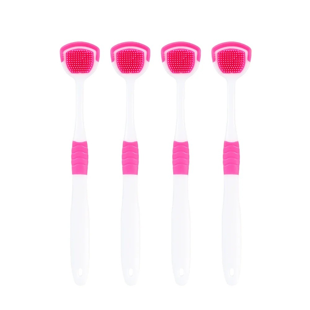 Set di 4 raschietti per lingua in silicone 2 in 1 con punte piccole e grandi. Aiuta a rimuovere la placca dalla lingua e favorisce un alito fresco. Descrizione completa