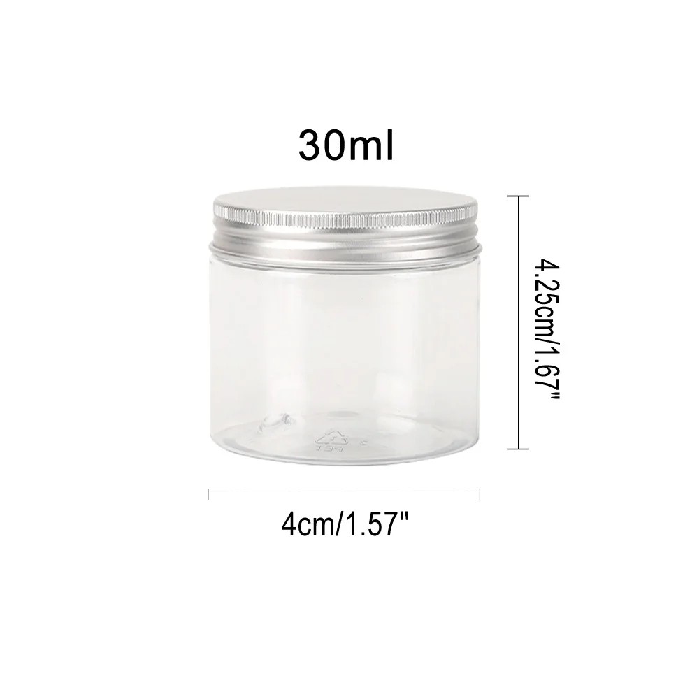 5 pz Contenitore cosmetico in plastica con coperchio a vite in alluminio 30 ml 40 × 42,5 mm Barattolo trasparente per creme balsami unguenti confezione cosmetica