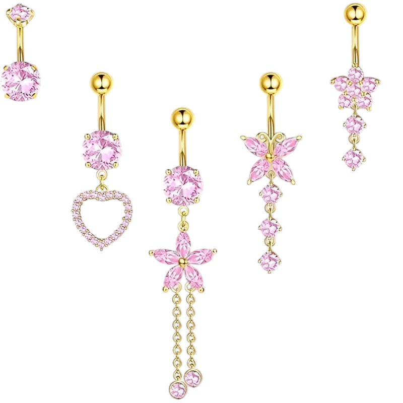 Set elegante di piercing in acciaio inossidabile con diamanti e delicati pendenti, adatto per l'uso quotidiano e per occasioni speciali. Descrizione completa