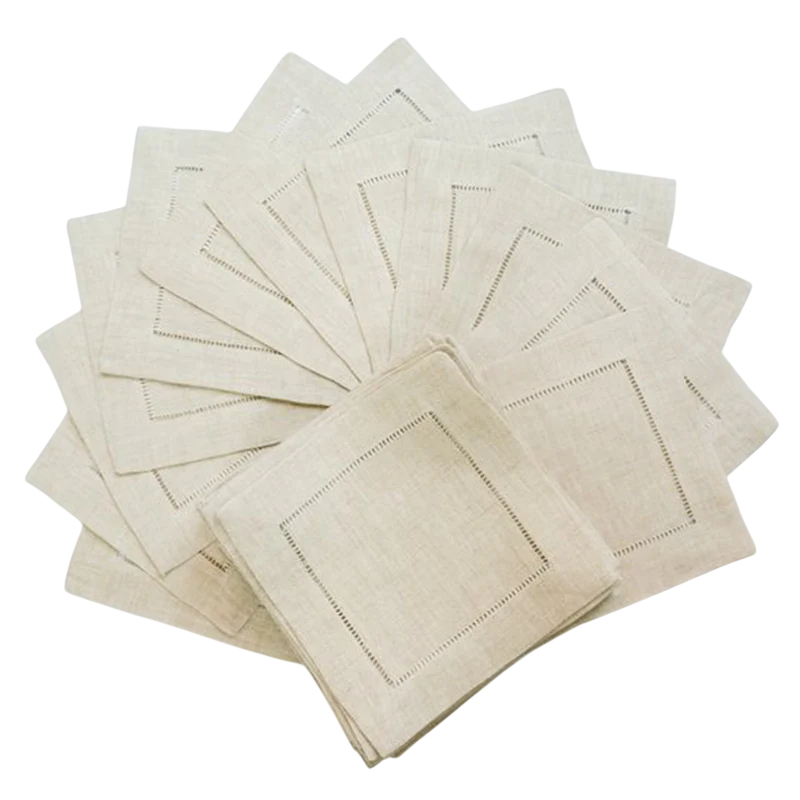 6 pz Tovaglioli in tessuto 20 x 20 cm Con bordo decorativo a punto smock Tovaglioli da tavola in cotone e lino Tovaglioli eleganti per la tavola