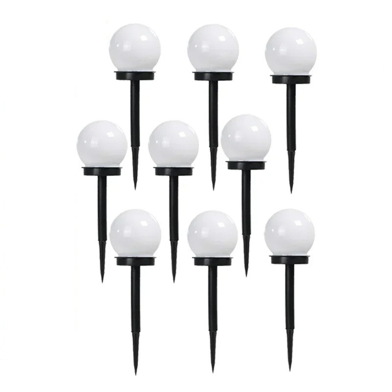 Contenuto della confezione: 9× luce da giardino solare LED con lampadina bianca, 9× picchetto da infilare, pannelli solari integrati.