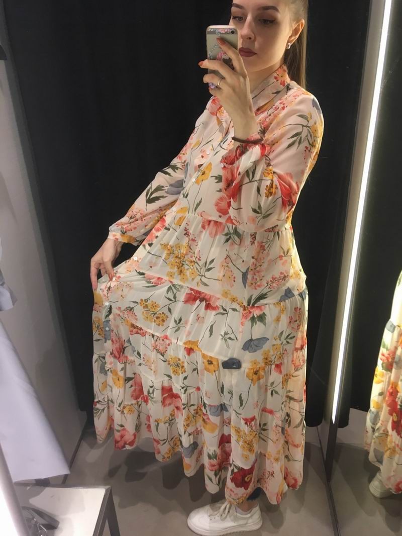 Abiti da donna con maniche lunghe. Stampa floreale e colletto classico.