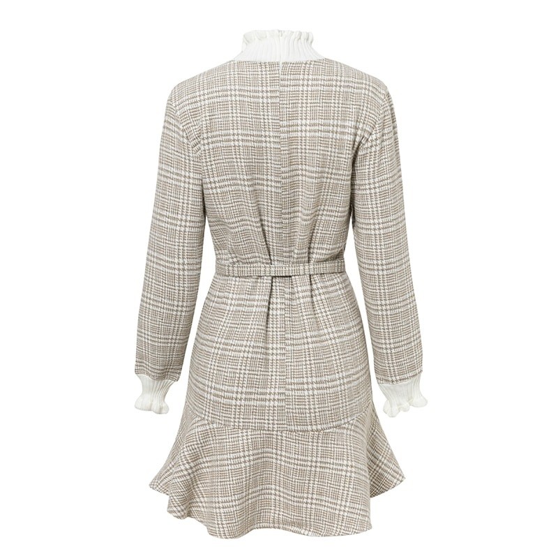 Abiti a collo alto autunnali per donna con gonna a volant.