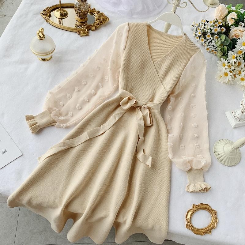 Abiti a maglia autunnali da donna con gonna ampia e maniche.