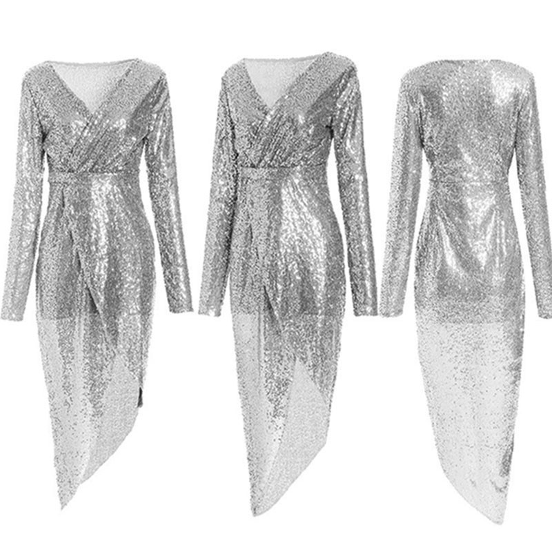 Luxuosi abiti midi a portafoglio con maniche lunghe.