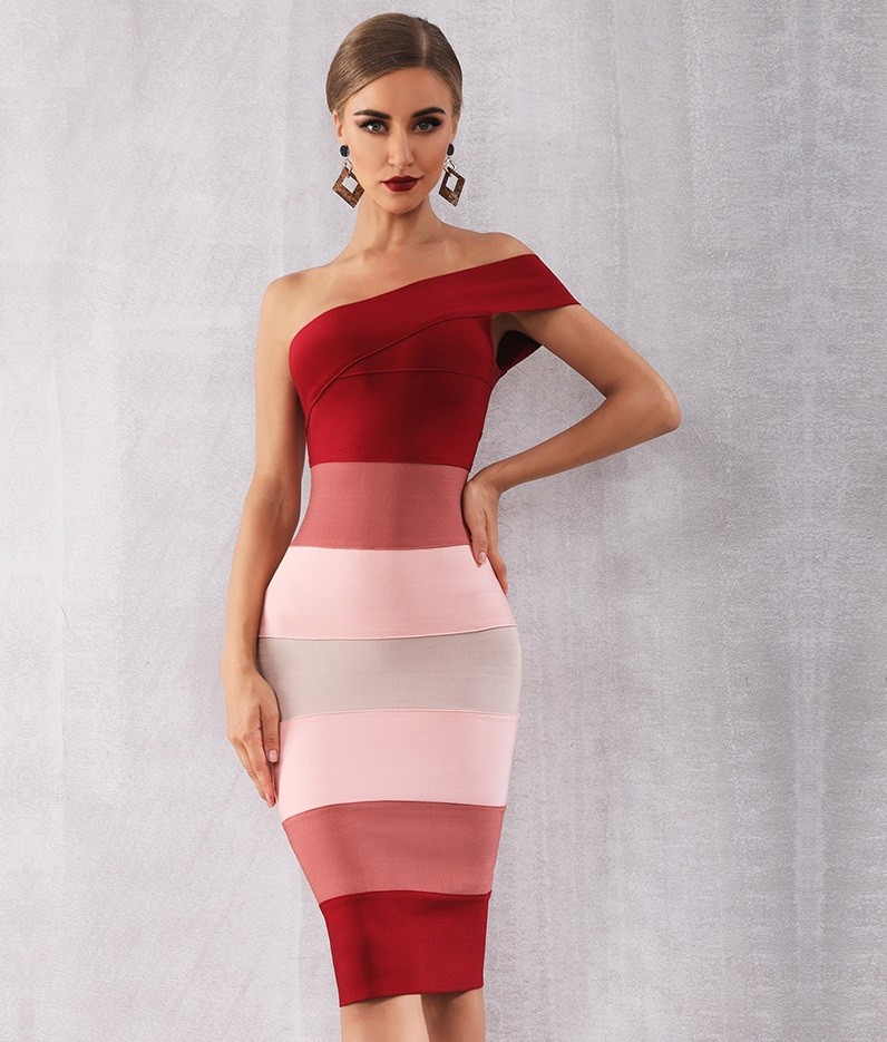Elegante abito stretch a spalla unica.