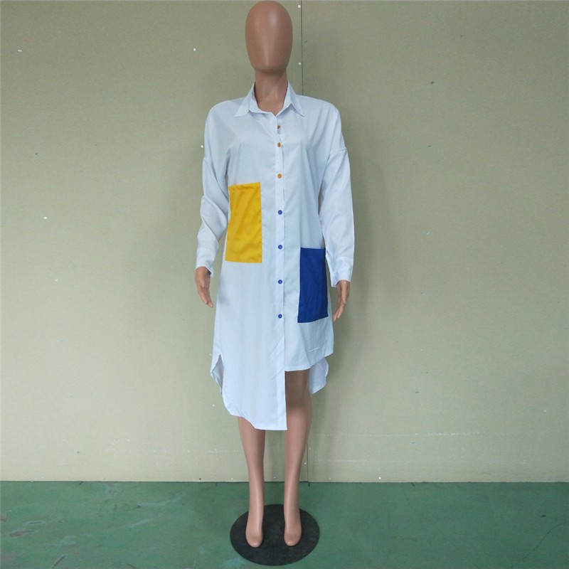 Abito camicia originale con tasche colorate.