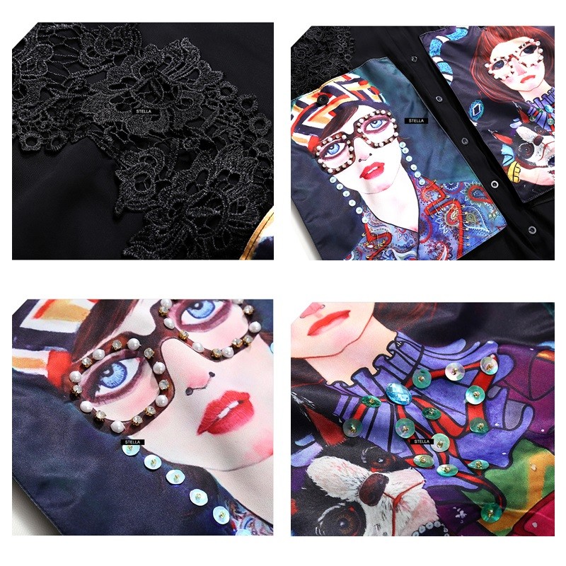 Grandi tasche evidenti e decorazioni in pizzo.