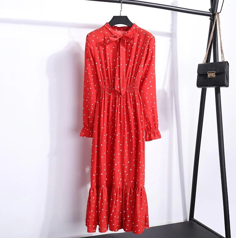 Irresistibile arricciatura romantica e lunghezza fino al ginocchio!