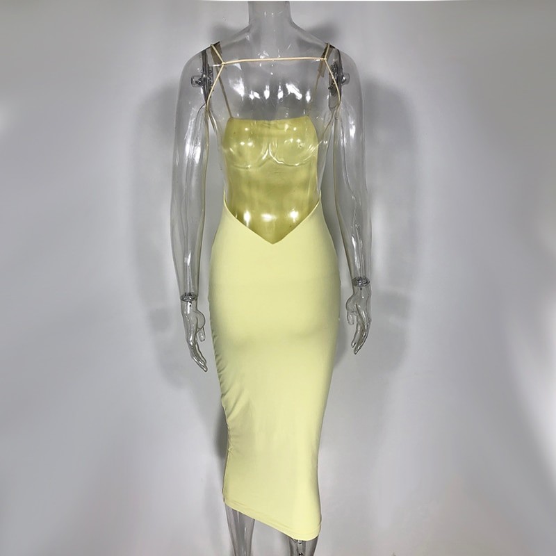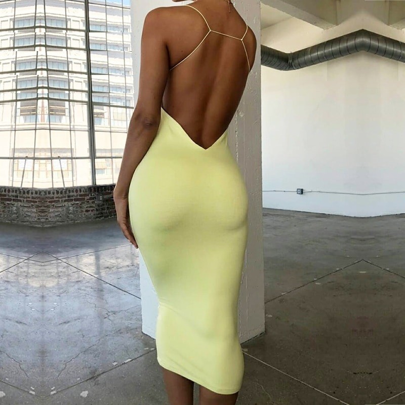 Profondo scollo sulla schiena e spalline incrociate.