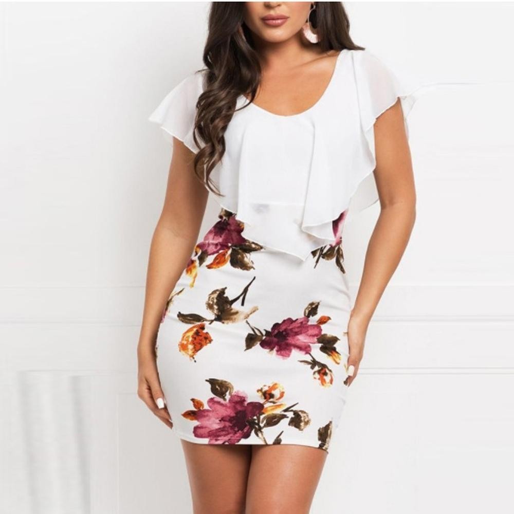 Abiti da donna in lunghezza mini con corpetto decorato da volant.