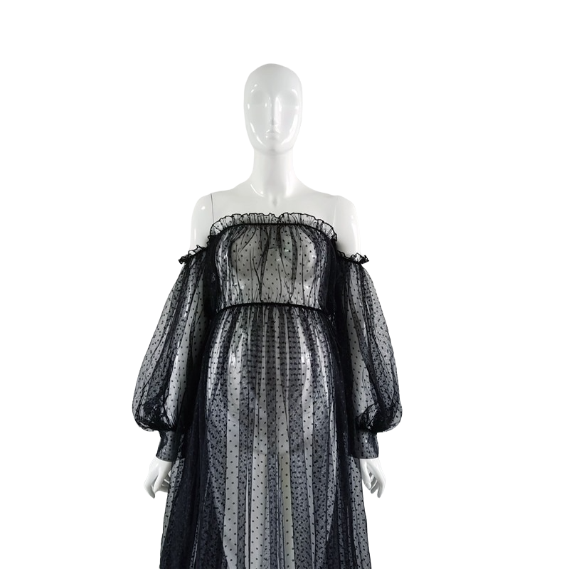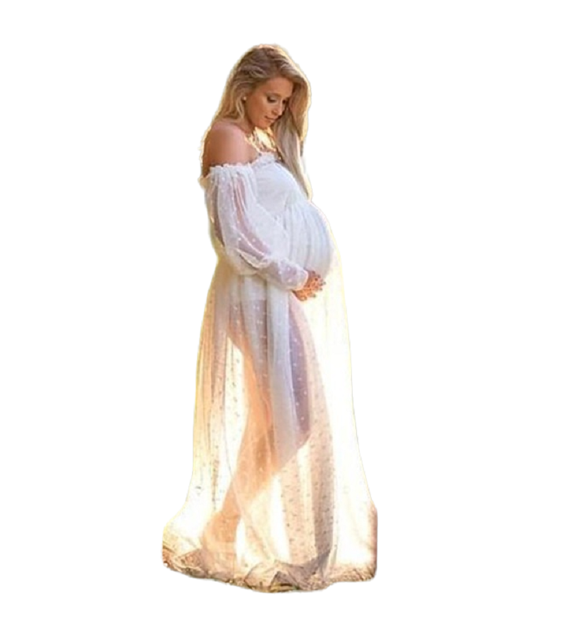 Abiti da maternità lunghi realizzati in materiale di alta qualità e confortevole. Gli abiti hanno anche maniche lunghe trasparenti. Adatti per servizi fotografici di maternità e eventi sociali.