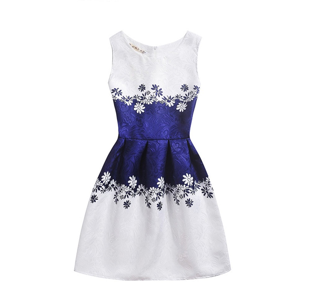 Bellissimi abiti da ragazza con colore blu al centro e fiori bianchi.