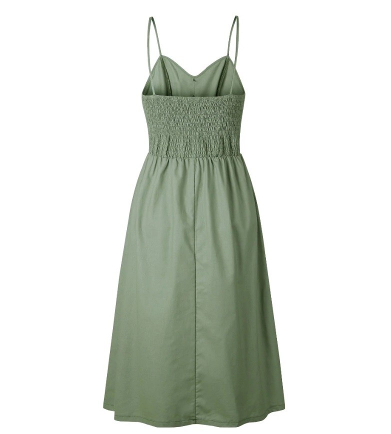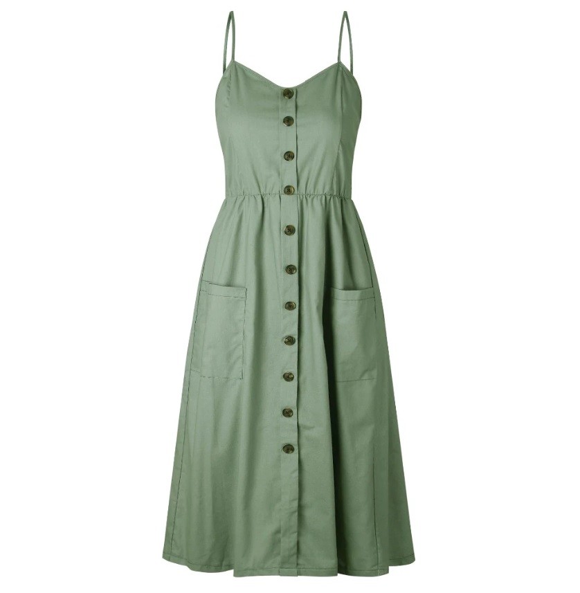 Abiti estivi da donna con spalline e bottoni. La lunghezza midi degli abiti non passa mai di moda!