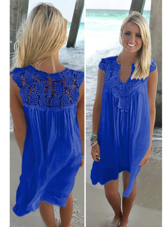 Abiti estivi larghi decorati con pizzo sono perfetti per la spiaggia.