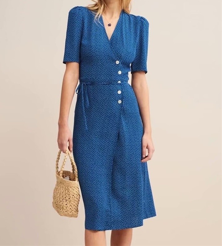 Eleganti abiti estivi sotto il ginocchio con un delicato motivo a pois.