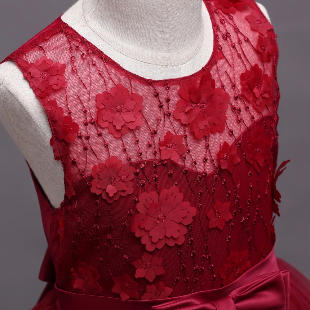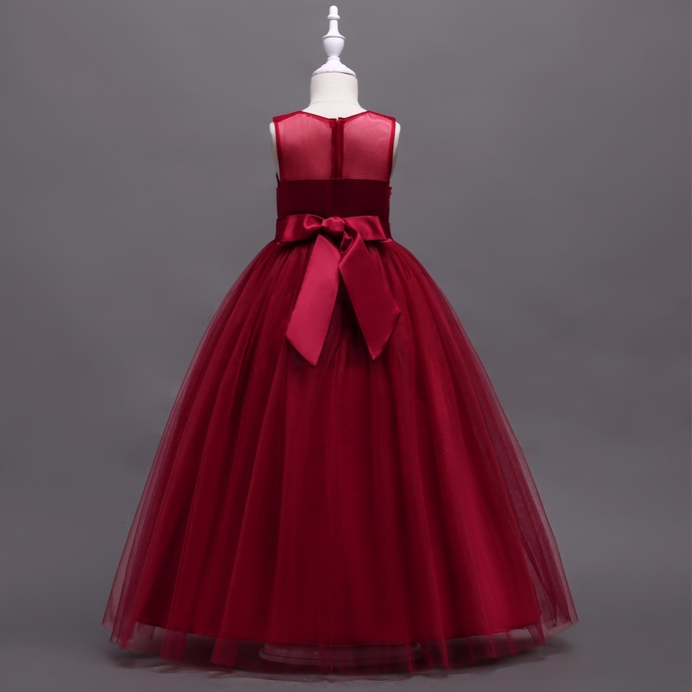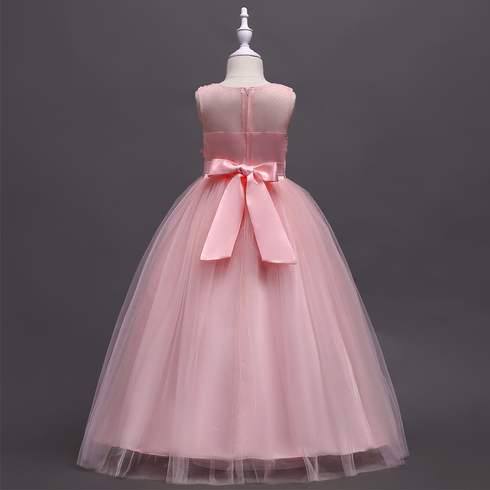 Abiti lunghi da ragazza con fiori e fiocco J2901