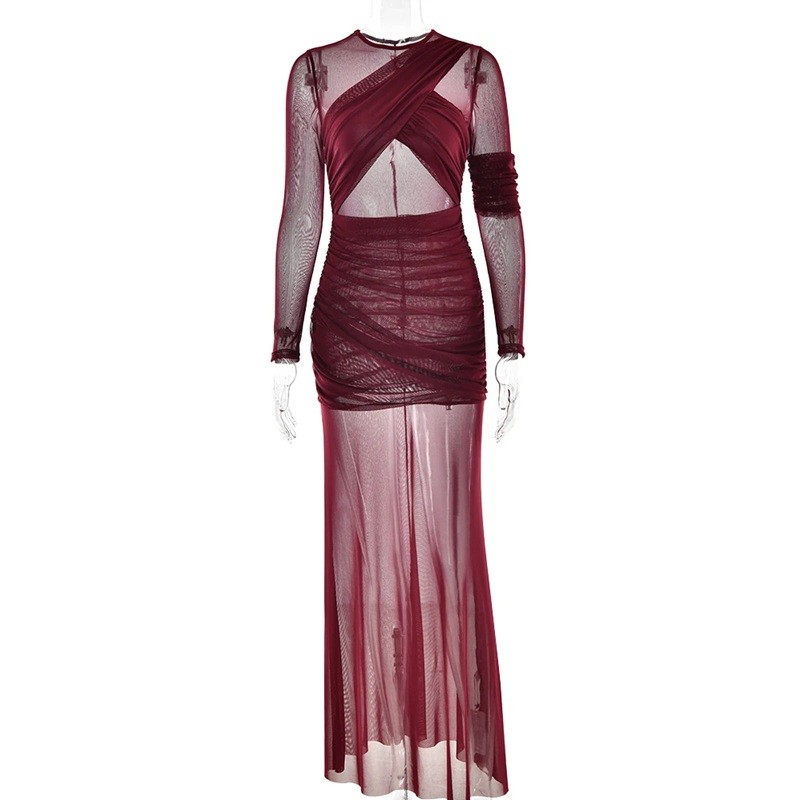 Pagina iniziale Pagina iniziale Abbigliamento e accessori Abbigliamento donna Vestiti da donna Vestiti da cerimonia da donna Abiti lunghi trasparenti con arricciature asimmetriche Maniche trasparenti e effetto sovrapposto Vestibilità aderente Abiti eleganti da sera per donne audaci