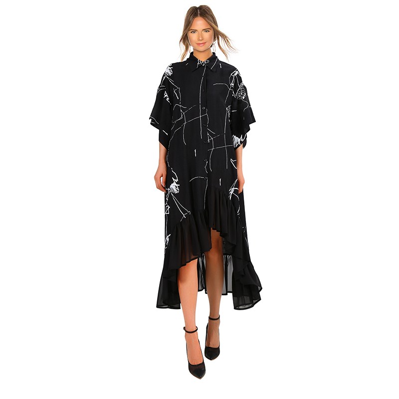 Abiti maxi asimmetrici da donna con taglio a camicia ampio.