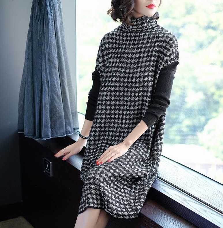 Eleganti abiti autunnali da donna con maniche lunghe e colletto alto.