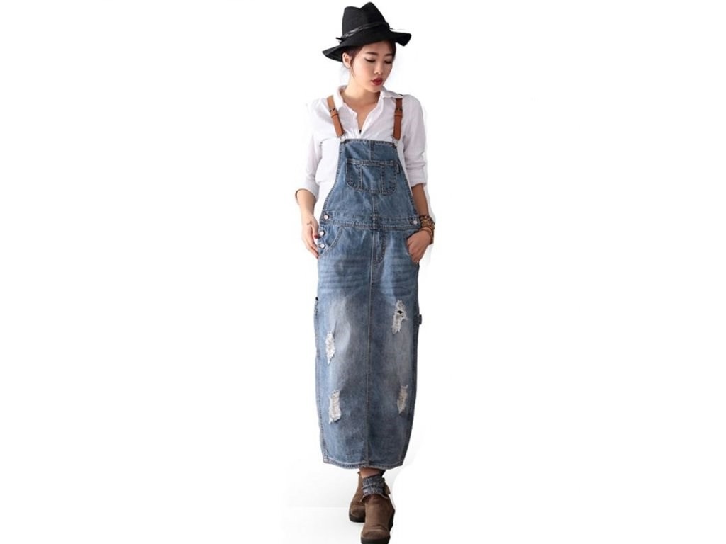 Abiti midi in denim con bretelle