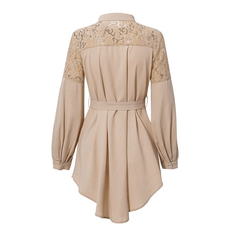 Ležérní krátké šaty v košilovém střihu zdobené jemnou krajkou.