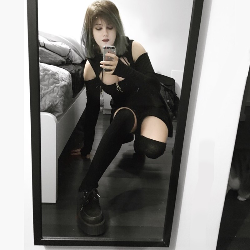 Abiti mini da donna con aperture sulle spalle. Maniche lunghe e scollatura lavorata in modo elegante.