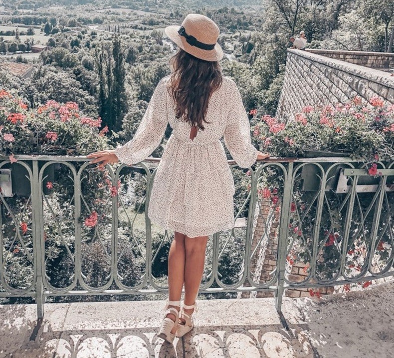 Le maniche lunghe e la gonna a strati sembrano uscite da una favola.