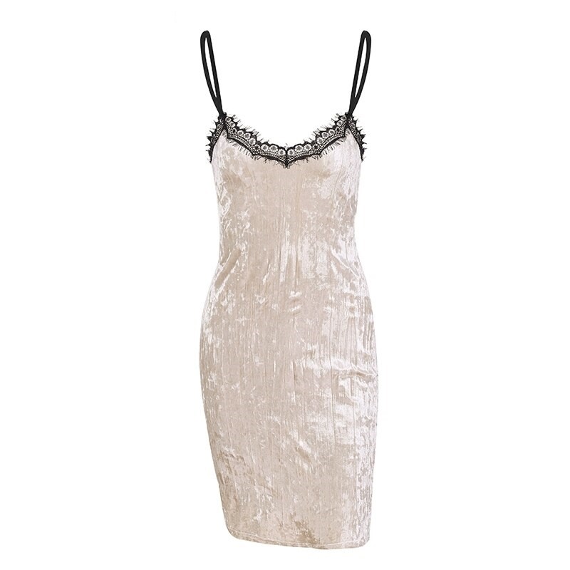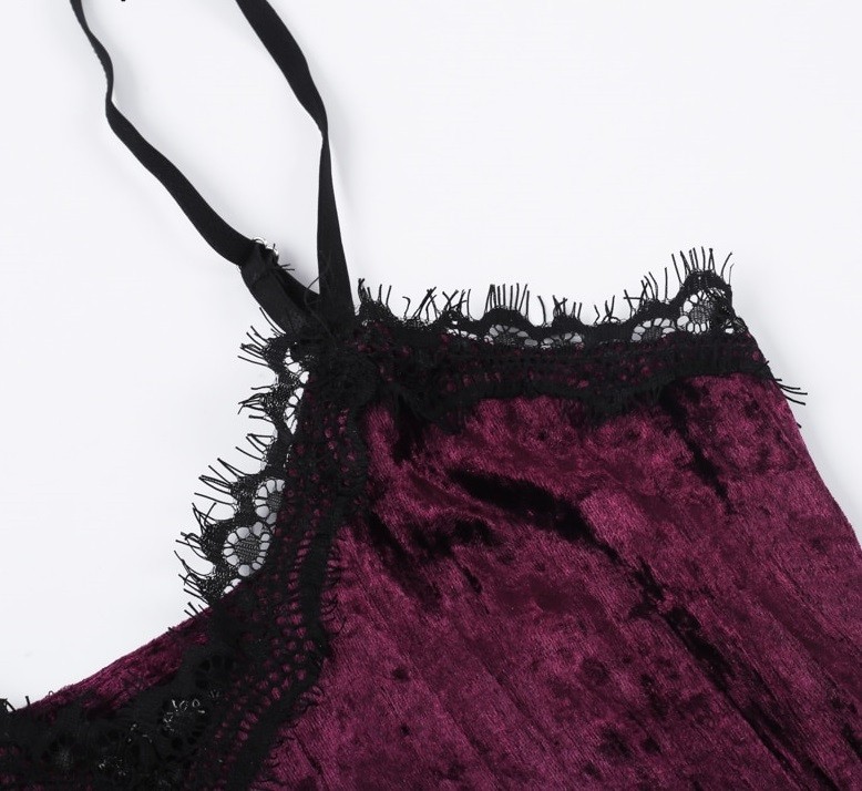 Luxuoso abito mini in velluto per donna decorato con delicata pizzo.