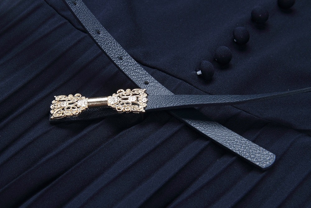 Elegante abito da donna con maniche. Corpino decorato con bottoni.