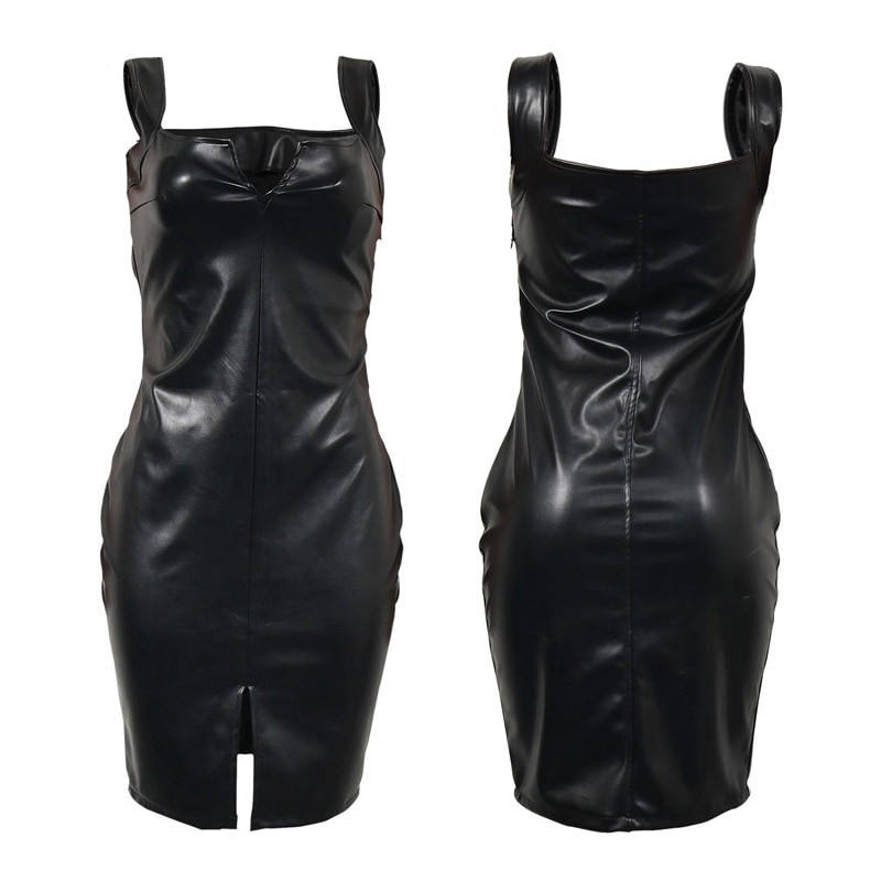 Sexy abiti neri attillati in moderna ecopelle.