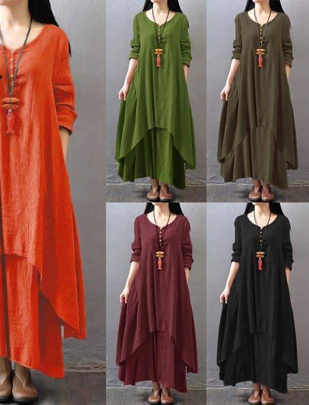 Abiti lunghi e larghi con maniche lunghe.