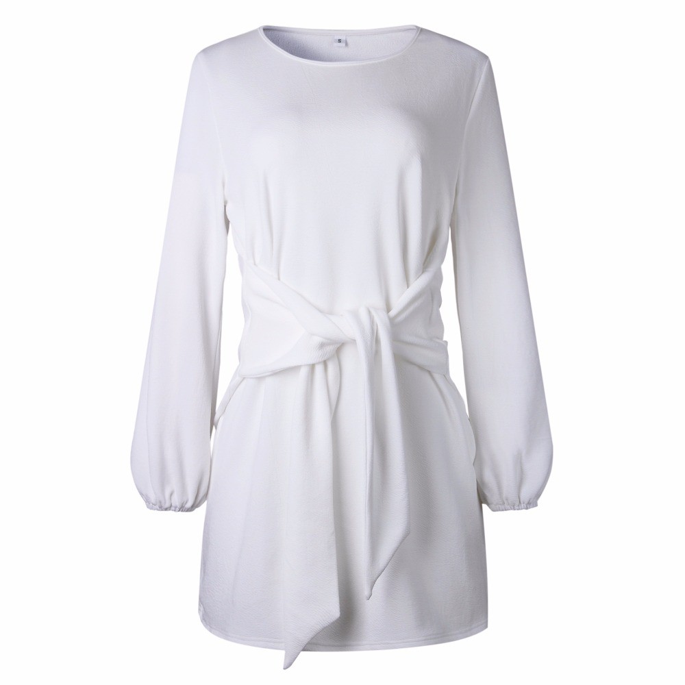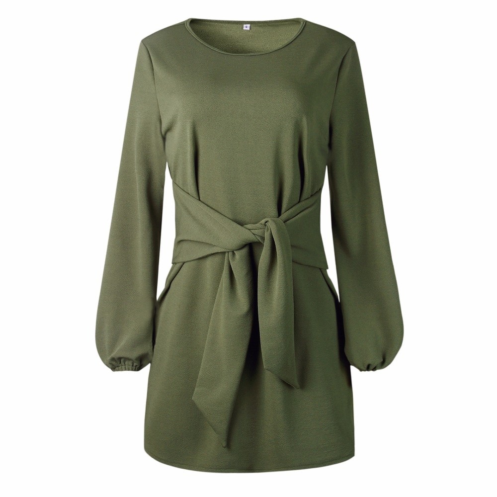 Abito da donna insolito con un taglio elegante. Originale soluzione di legatura in vita.