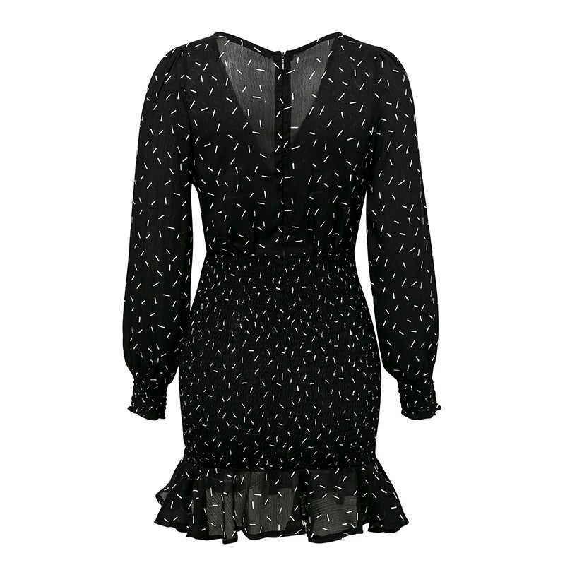 Parte inferiore elasticizzata, orlo a volant della gonna e delle maniche.