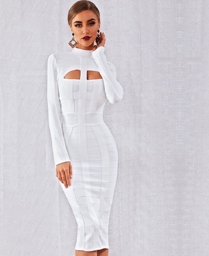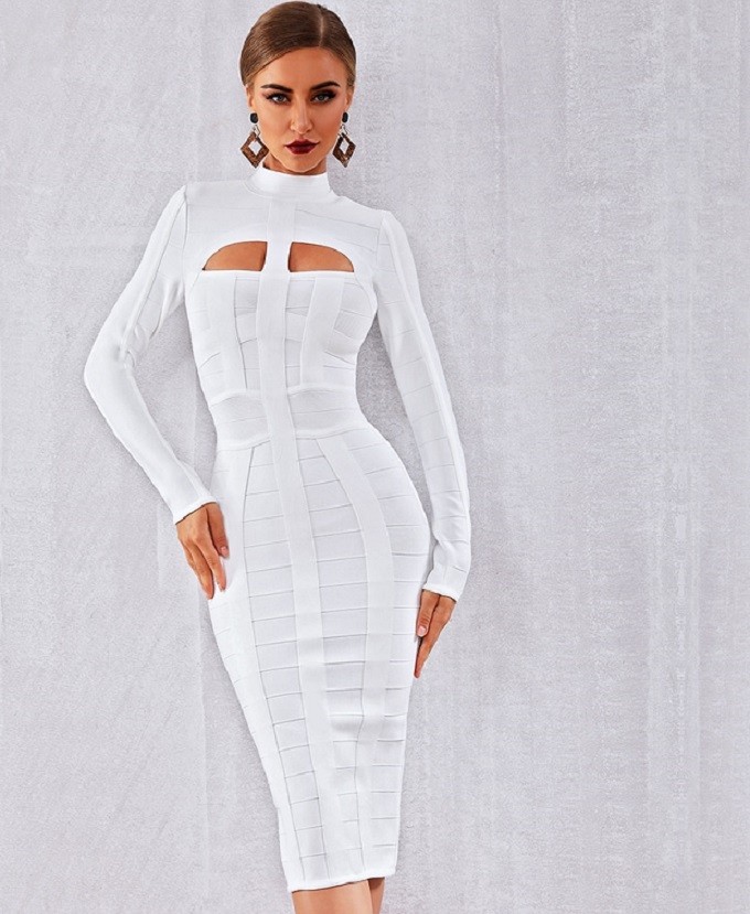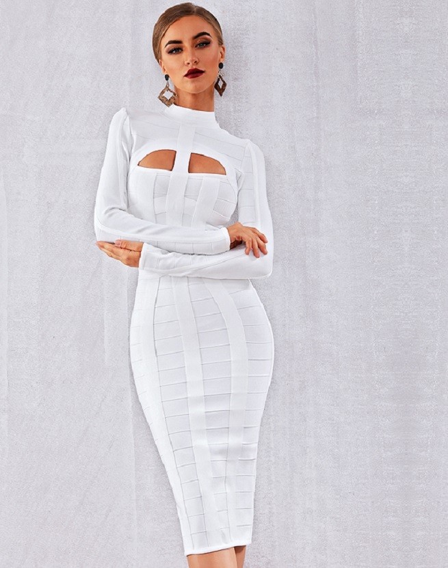 Sexy abito a fascia con collo alto e maniche lunghe.