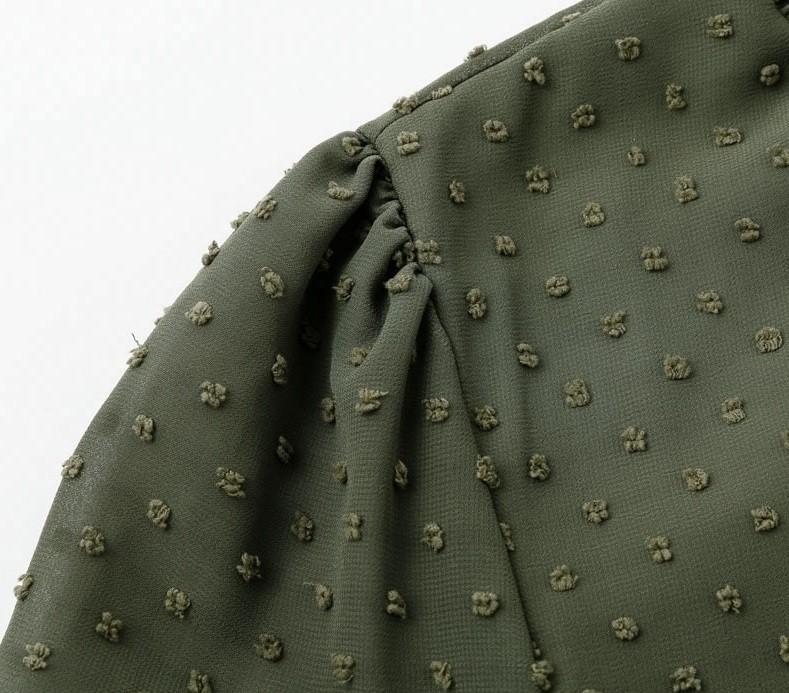 Maniche lunghe, vita elastica, motivo originale del tessuto.