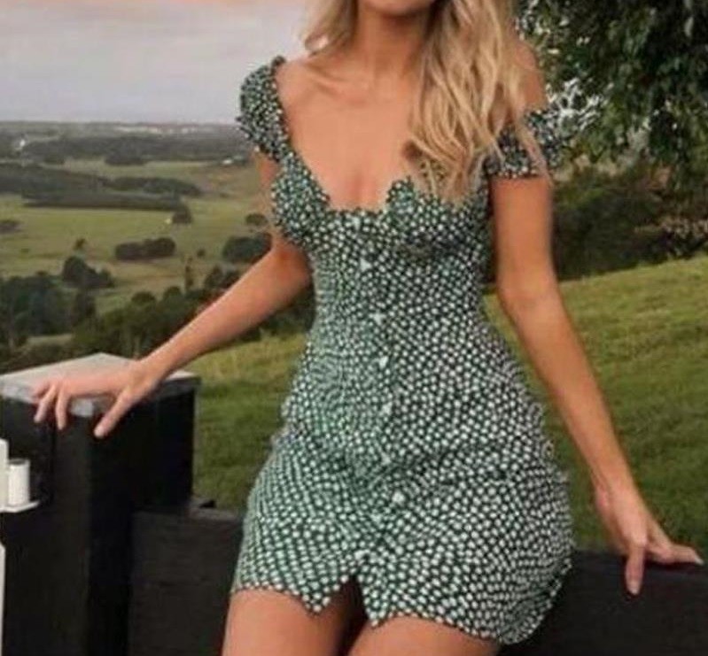 Abito mini estivo da spiaggia in un moderno taglio impero.
