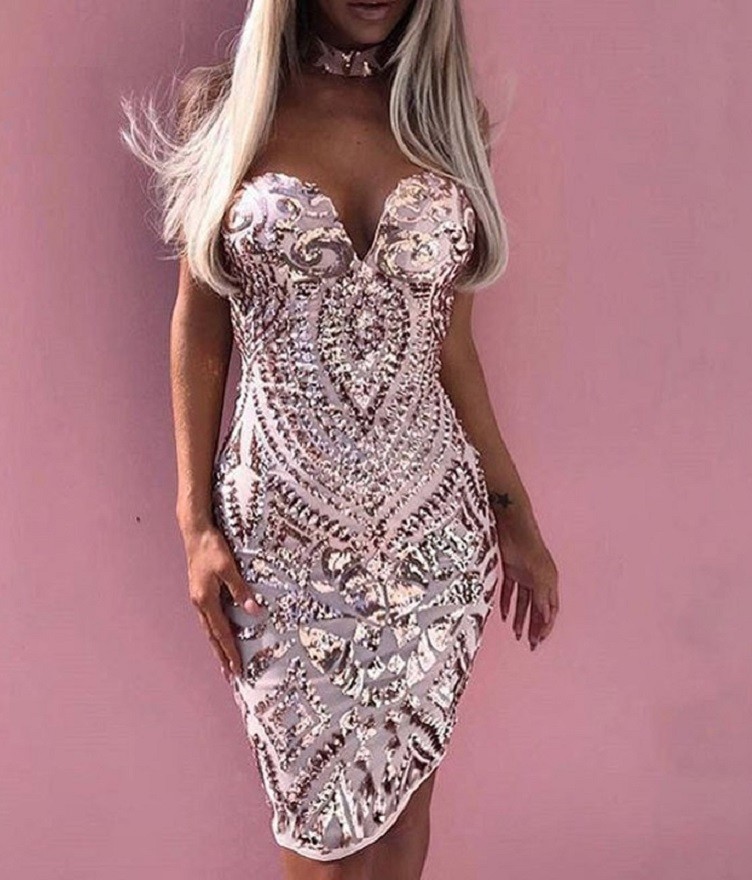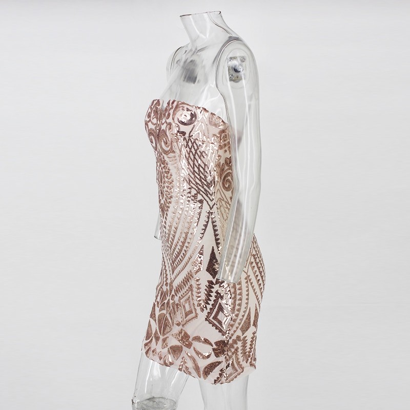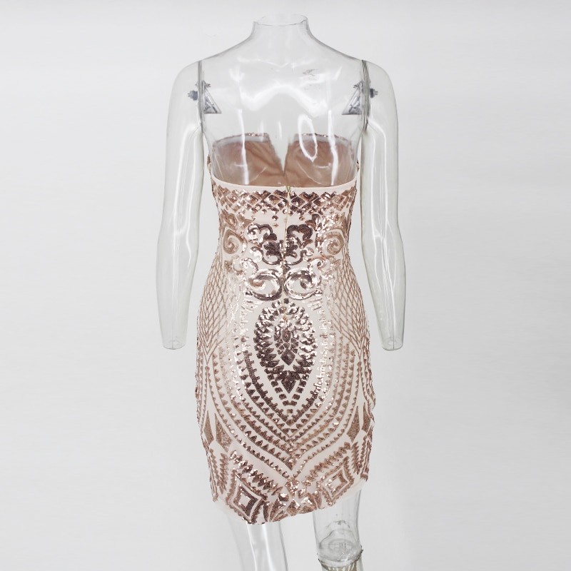 Abito mini di lusso con scollatura a girocollo realizzato in materiale di paillettes scintillanti.