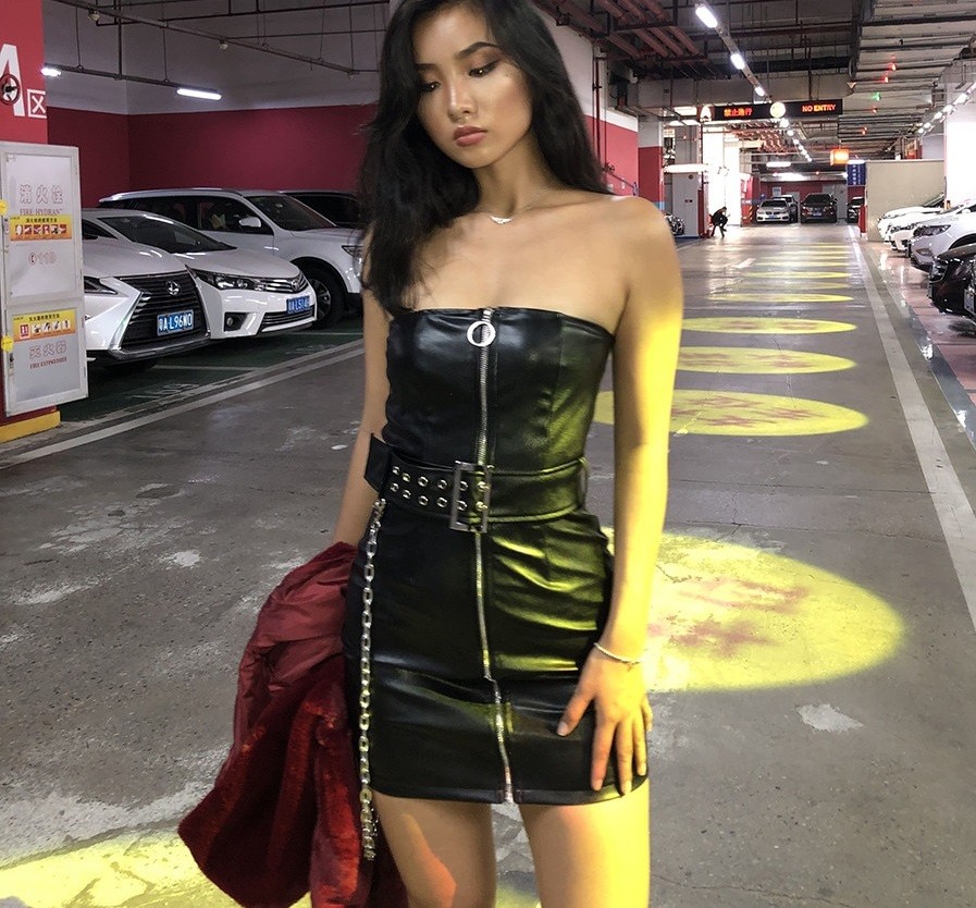 Abito sexy per rocker. Taglio semplice senza spalline.