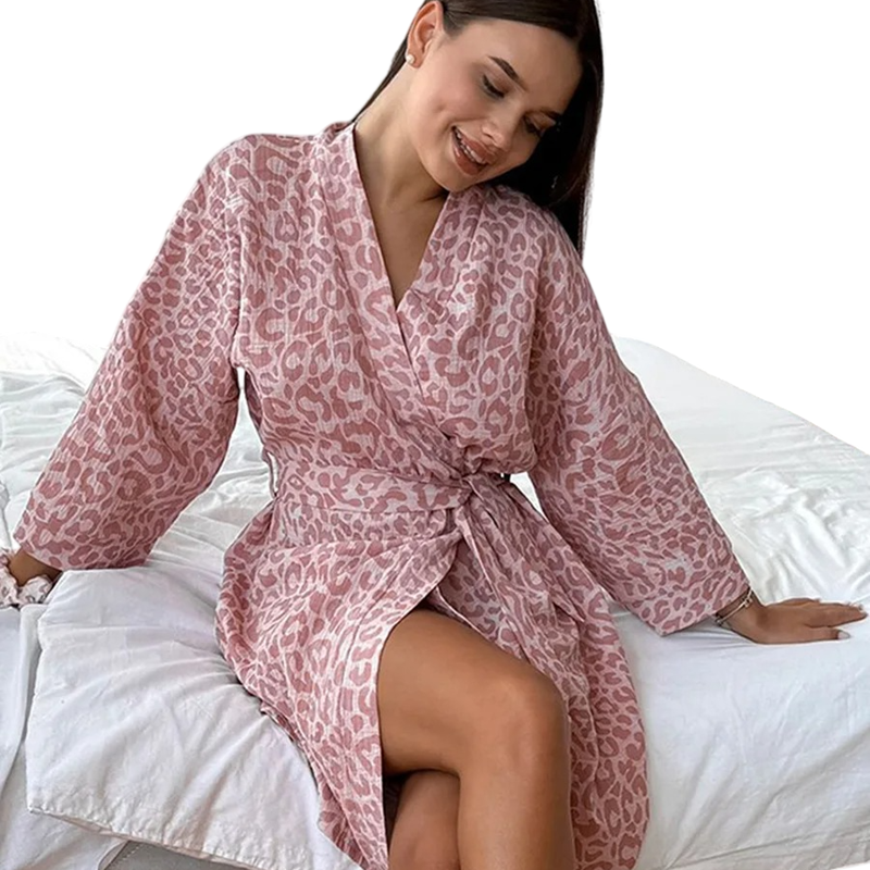 Questo accappatoio rappresenta un ottimo modo per portare stile e comfort nell'abbigliamento domestico. Il materiale in cotone garantisce un indossare piacevole e una lunga durata, mentre la vestibilità leggera supporta la libertà di movimento. Il motivo leopardato conferisce all'accappatoio un aspetto attraente che cattura l'attenzione a prima vista e gli conferisce un'energia elegante. Il colore rosa aggiunge delicatezza, rendendo l'intero design armonioso e alla moda. Se stai cercando un accappatoio comodo e alla moda per l'uso domestico quotidiano, questo modello è un'ottima scelta.