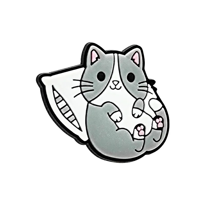 Accessorio per crocs gatto grigio bianco su cuscino PVC decorazione grigio bianco per scarpe crocs decorazione calzature con motivo di gatto