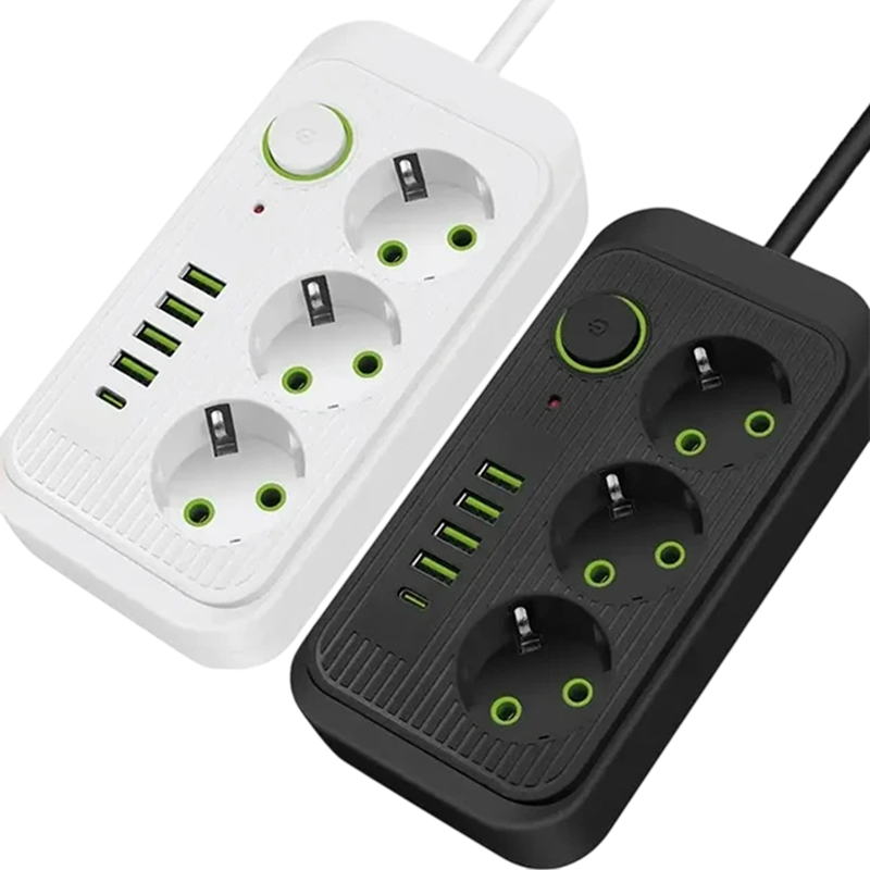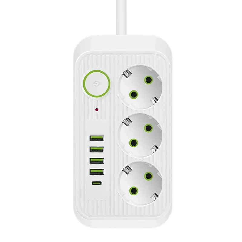 Questo adattatore di prolunga offre un'eccellente soluzione per alimentare in modo sicuro e comodo più dispositivi contemporaneamente. Grazie al cavo di 2 metri e alla combinazione di 3 prese AC con porte USB moderne (USB-C e quattro USB-A), garantisce compatibilità universale con vari elettrodomestici e accessori. La potenza fino a 2500 W consente di collegare dispositivi elettrici più esigenti. La spia LED e l'interruttore pratico consentono un controllo facile e sicuro dell'intera rete. L'adattatore è ideale sia per le abitazioni che per gli uffici, dove è necessario avere un numero sufficiente di prese e ricarica USB rapida.