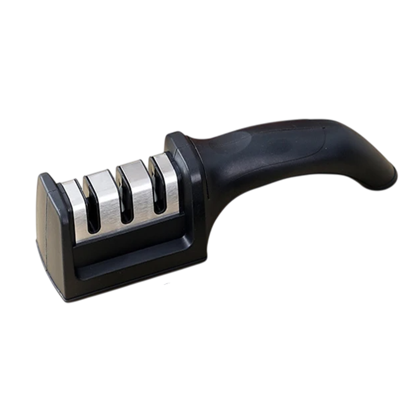 Affilatore manuale pratico con tre fasi di affilatura, nucleo in acciaio inossidabile e base antiscivolo per un'affilatura comoda e sicura a casa. Descrizione completa