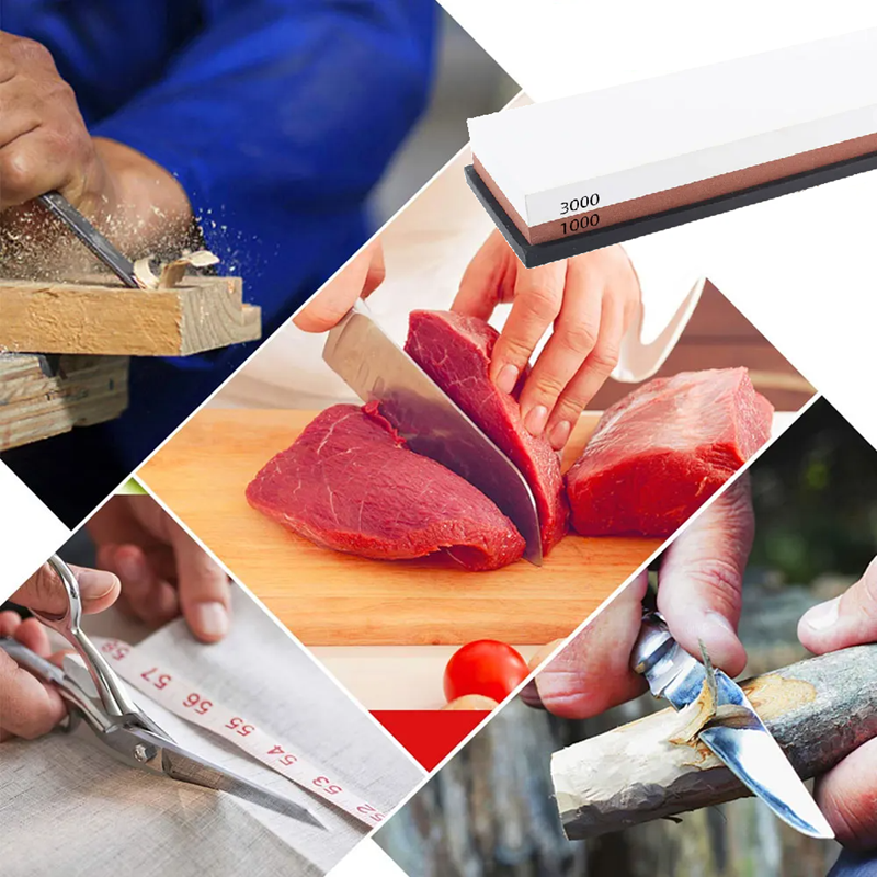 Affilatore per coltelli a doppia faccia 1000/3000 grit corindone bianco con base antiscivolo pietra per utensili da cucina forbici e scalpelli
