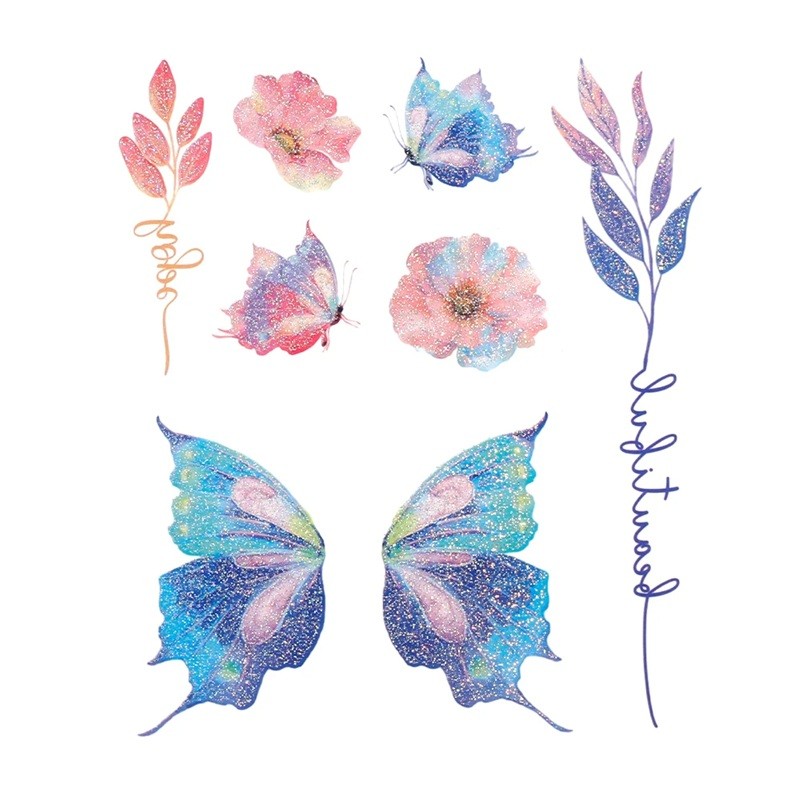 • Ali di fata e farfalle con tatuaggio lucido – design magico ispirato alla natura