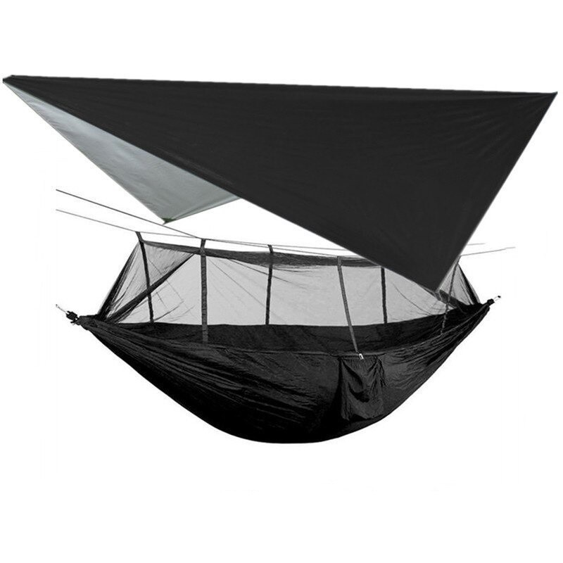 Se ami viaggiare e pernottare nella natura, dovresti procurarti questa amaca. È realizzata con materiali di alta qualità, che le conferiscono una portata di 300 kg. È anche dotata di una rete contro gli insetti. Ha anche un telo contro il sole e la pioggia, così potrai riposare senza alcun problema. L'amaca è adatta per due persone.